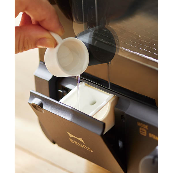 水入れに水を入れると、スチームモードで外はカリっと、中はもっちりした食感を生み出します。