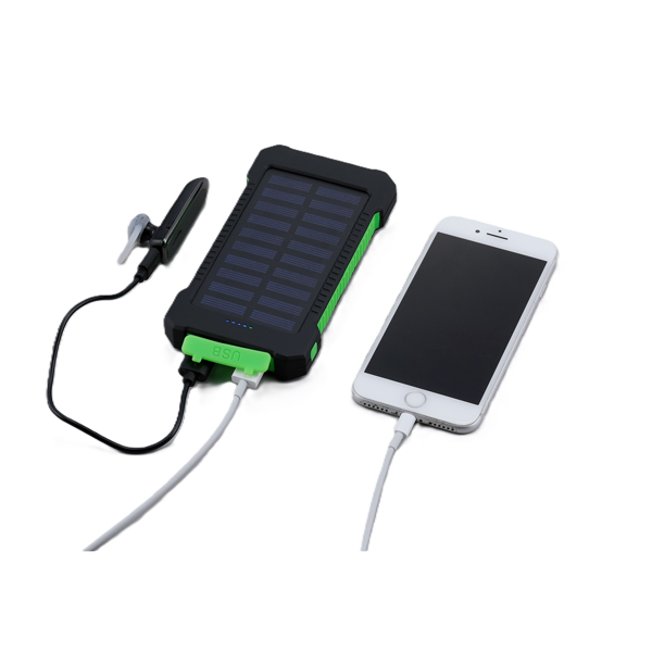 太陽光とUSB両方で充電できるモバイルバッテリー。
