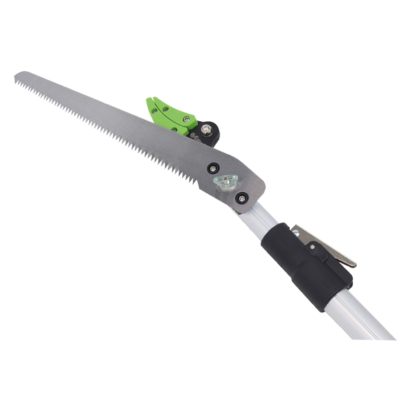 枝を切るハサミだけでなく、付属のノコギリを取り付けて太い枝の切断も可能。